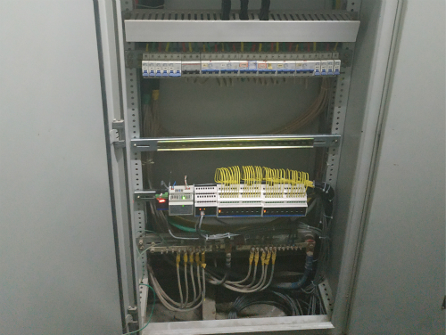該項目采用了VSU總線系列的網(wǎng)關主機模塊、電源模塊、級聯(lián)模塊、4路、8路、12路、16路開關執(zhí)行模塊、連接片及另附邏輯主機、溫度傳感器。232串口模塊收集周圍溫度信息,發(fā)送信息到網(wǎng)關主機至邏輯主機,通過邏輯主機內(nèi)設置的溫度開關范圍,再發(fā)送指令至網(wǎng)關主機實現(xiàn)空調(diào)開關。