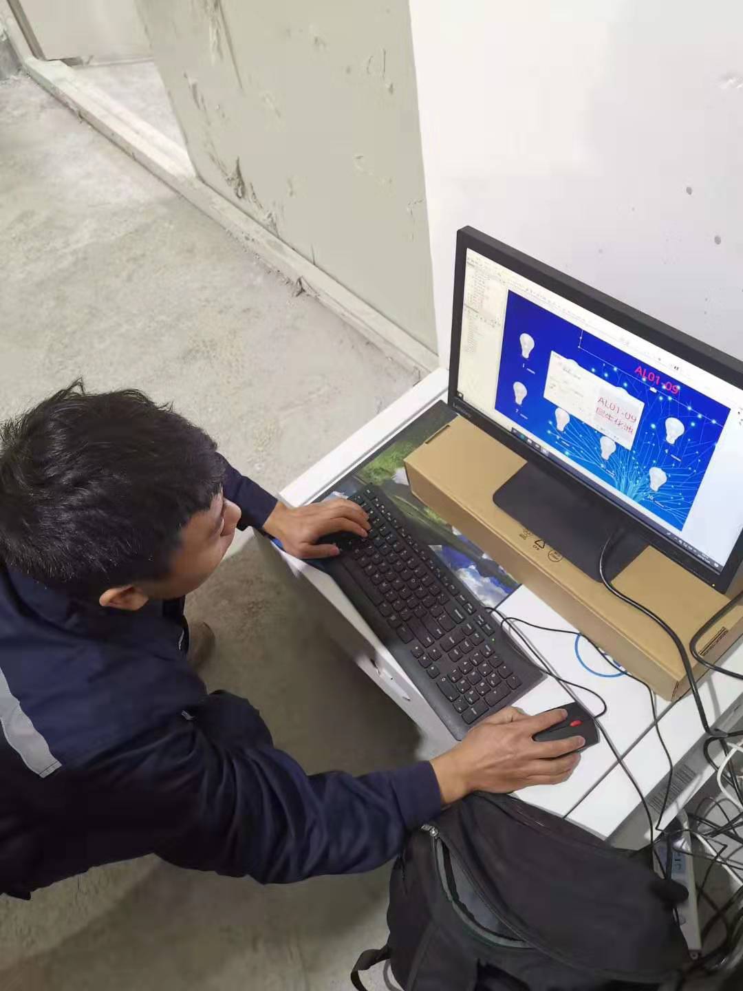 VSU智能照明控制系統(tǒng)可實(shí)現(xiàn)對(duì)區(qū)域內(nèi)所有燈具開閉,調(diào)光調(diào)色,定時(shí)控制,空調(diào)高中低三檔、電動(dòng)門、電動(dòng)窗簾開閉,可帶人感、光感,實(shí)現(xiàn)全自動(dòng)化??刂品绞娇蛇x擇手機(jī)、電腦、觸摸屏、面板。根據(jù)客戶需求,VSU為安康江南再生水廠該項(xiàng)目設(shè)計(jì)的控制方式為電腦+觸摸屏。下圖為現(xiàn)場(chǎng)測(cè)試情況: