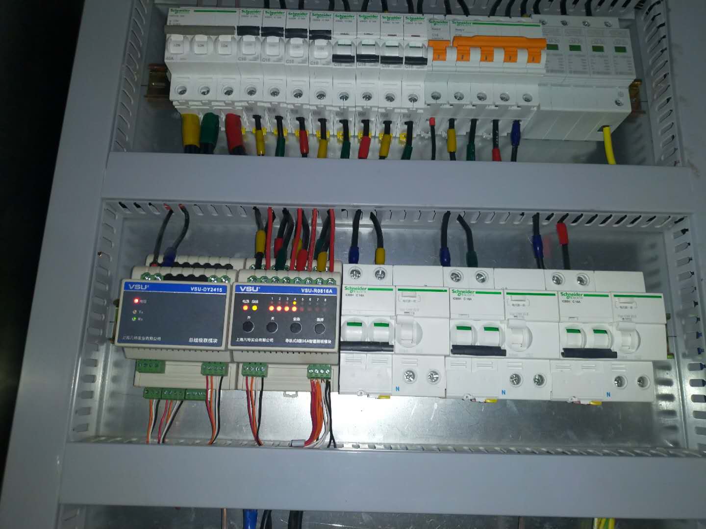 VSU通過(guò)采用當(dāng)前最新的控制系統(tǒng)硬件技術(shù)和成熟可靠的軟件系統(tǒng),定制出一套適合于河濱地下污水處理廠所需要、技術(shù)先進(jìn)、性能可靠、穩(wěn)定、性能價(jià)格比高、開(kāi)放性好、易于擴(kuò)展的控制系統(tǒng),滿足用戶為了提高生產(chǎn)效率、強(qiáng)化生產(chǎn)管理、保證生產(chǎn)安全、降低生產(chǎn)成本的要求。在了解到客戶需求,現(xiàn)場(chǎng)情況等因素后,最終該項(xiàng)目采用的是VSU總線型智能照明控制系統(tǒng),網(wǎng)關(guān)主機(jī)搭配電源模塊、級(jí)聯(lián)模塊、4路16A智能照明控制模塊、8路16A智能照明控制模塊、4鍵、6鍵智能照明控制面板、連接片,既能操作電腦達(dá)到一鍵全開(kāi)、全關(guān)的效果,也能設(shè)置場(chǎng)景控制,減少能耗。