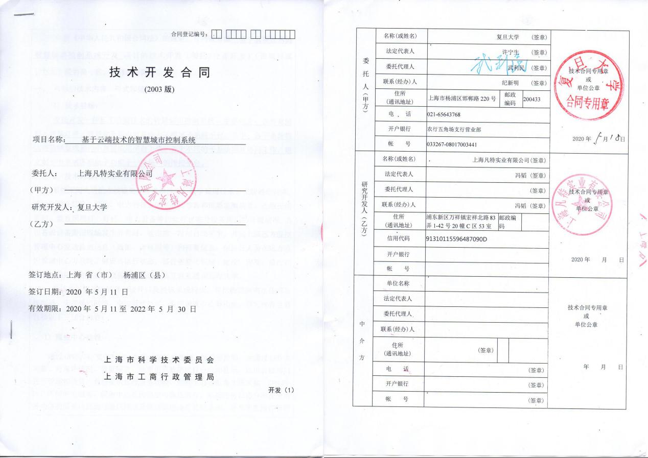 同年 5月11日,上海凡特實(shí)業(yè)有限公司正式與復(fù)旦大學(xué)簽訂《技術(shù)開發(fā)合同》——基于云端技術(shù)的智慧城市控制系統(tǒng)。項(xiàng)目將圍繞智慧城市開展科學(xué)研究、技術(shù)開發(fā)、成果轉(zhuǎn)化及文化交流等方面的合作。這次合作一面是能夠落實(shí)國家科教興國戰(zhàn)略,促進(jìn)科技創(chuàng)新,加快企業(yè)經(jīng)濟(jì)發(fā)展,充分利用高等院校的技術(shù)、人力等資源以及先進(jìn)成熟的技術(shù)成果。另一面,利用企業(yè)的生產(chǎn)條件,提高教學(xué)的科研能力,將科研成果盡快地轉(zhuǎn)化為生產(chǎn)力,不斷提升企業(yè)的技術(shù)和管理水平,雙方發(fā)展各自優(yōu)勢。上海凡特通過多種形式開展全面合作,共同推進(jìn)公司與復(fù)旦學(xué)校的全面技術(shù)合作,形成專業(yè)、產(chǎn)業(yè)相互促進(jìn)、共同發(fā)展,努力實(shí)現(xiàn)“校企合作、產(chǎn)學(xué)雙贏”!