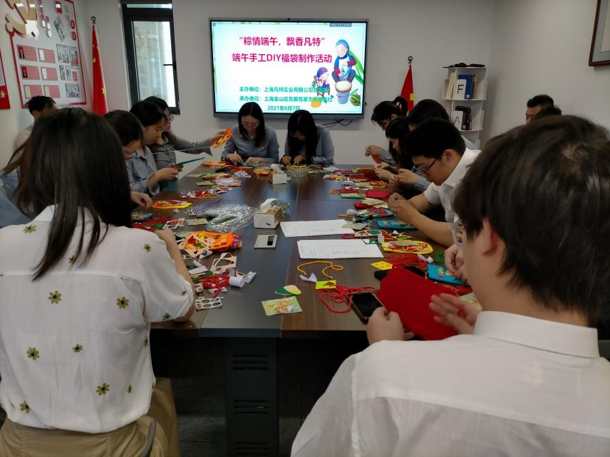 6月7日中午,由上海凡特實(shí)業(yè)有限公司黨支部主辦,上海金山區(qū)吾愛吾家為民服務(wù)社承辦的“粽情端午,飄香凡特”端午手工福袋制作活動在凡特公司會議室舉行,凡特公司黨政領(lǐng)導(dǎo)與全體員工參加了活動。活動開始,在服務(wù)社章老師的指導(dǎo)下,每位員工根據(jù)自己的想象,創(chuàng)意進(jìn)行了端午手工福袋的制作。經(jīng)過1個小時的活動,一個個精致的別具特色的福袋制作成功,你看,他們背著自己制作的福袋,享受著成功的喜悅。同時吾愛吾家為民服務(wù)社還給凡特公司員工送來了自己包的粽子,提前祝凡特公司員工端午節(jié)快樂。