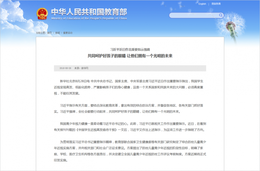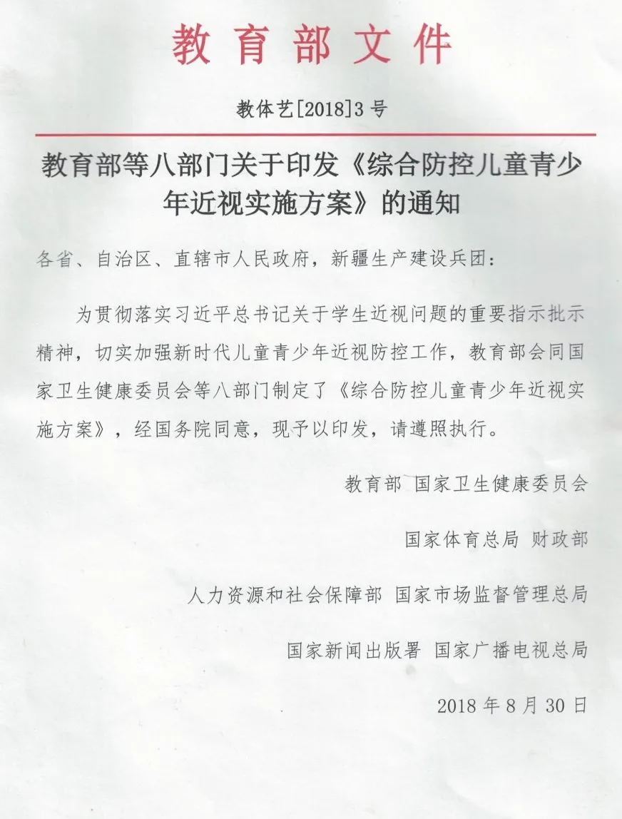 針對近年來我國兒童青少年近視率居高不下、不斷攀升,近視低齡化、重度化日益嚴(yán)重等問題,習(xí)近平總書記曾指出:我國學(xué)生近視呈現(xiàn)高發(fā)、低齡化趨勢,嚴(yán)重影響孩子們的身心健康,這是一個關(guān)系國家和民族未來的大問題,必須高度重視,不能任其發(fā)展。有關(guān)方面要結(jié)合深化教育改革,拿出有效的綜合防治方案,督促各地區(qū)、各有關(guān)部門抓好落實,同時強調(diào)全社會都要行動起來。