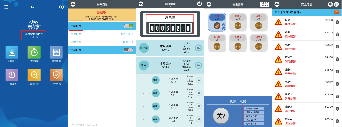 通過智慧用電安全監(jiān)管與電能管理系統(tǒng),管理人員可以通過高科技手段提升館內(nèi)電氣安全。當(dāng)電路中電流產(chǎn)生過壓或欠壓狀態(tài)自動(dòng)開始斷電,除能完成接觸和分?jǐn)嚯娐吠猓心軐?duì)電路或電氣設(shè)備發(fā)生的短路、過載及漏電等進(jìn)行保護(hù),最大限度預(yù)防電氣火災(zāi)和人員觸電傷亡事故。全局掌握館內(nèi)正常用電與違規(guī)電器使用數(shù)據(jù),并利用電氣故障情況統(tǒng)計(jì)匯總分析,實(shí)現(xiàn)遠(yuǎn)程控制、實(shí)時(shí)報(bào)警、統(tǒng)計(jì)運(yùn)算、節(jié)能管理與大數(shù)據(jù)分析。