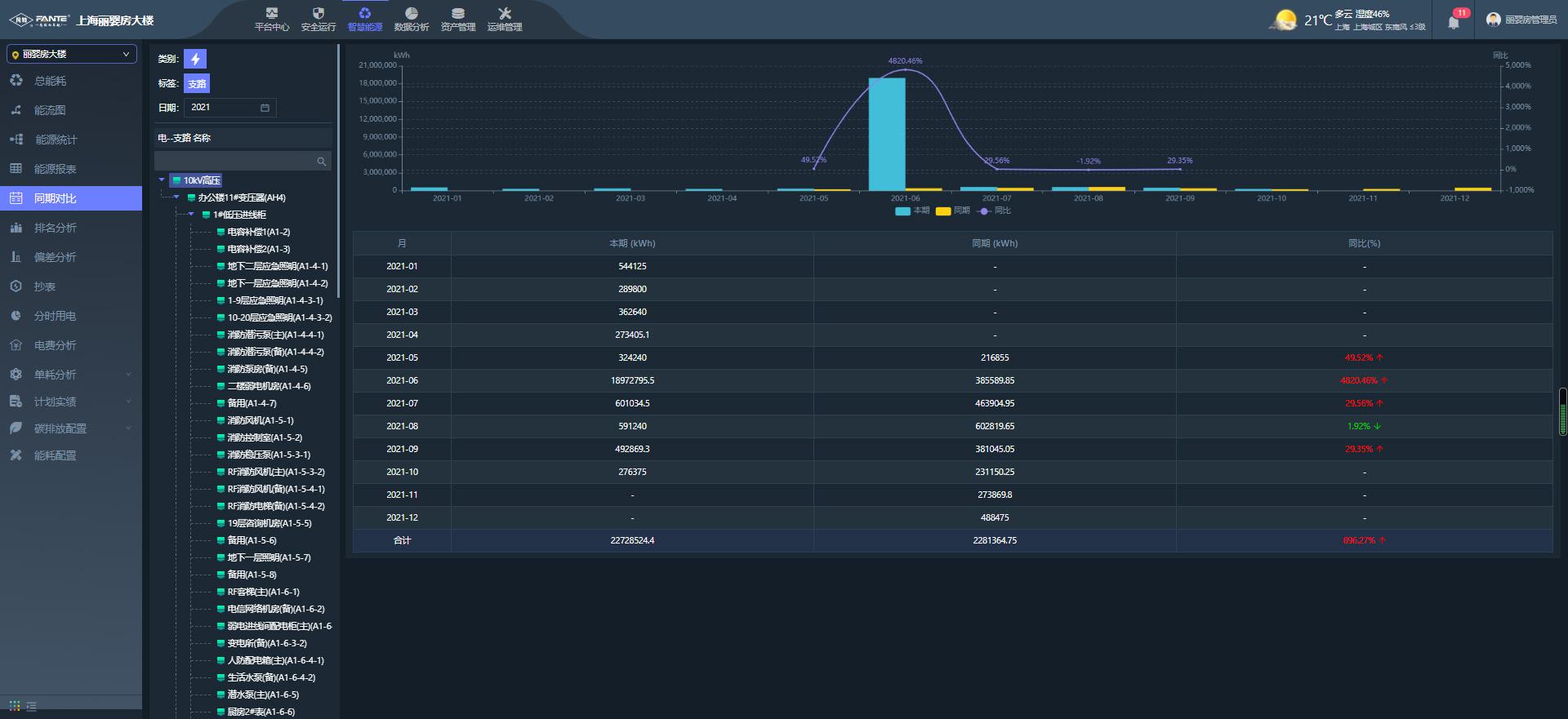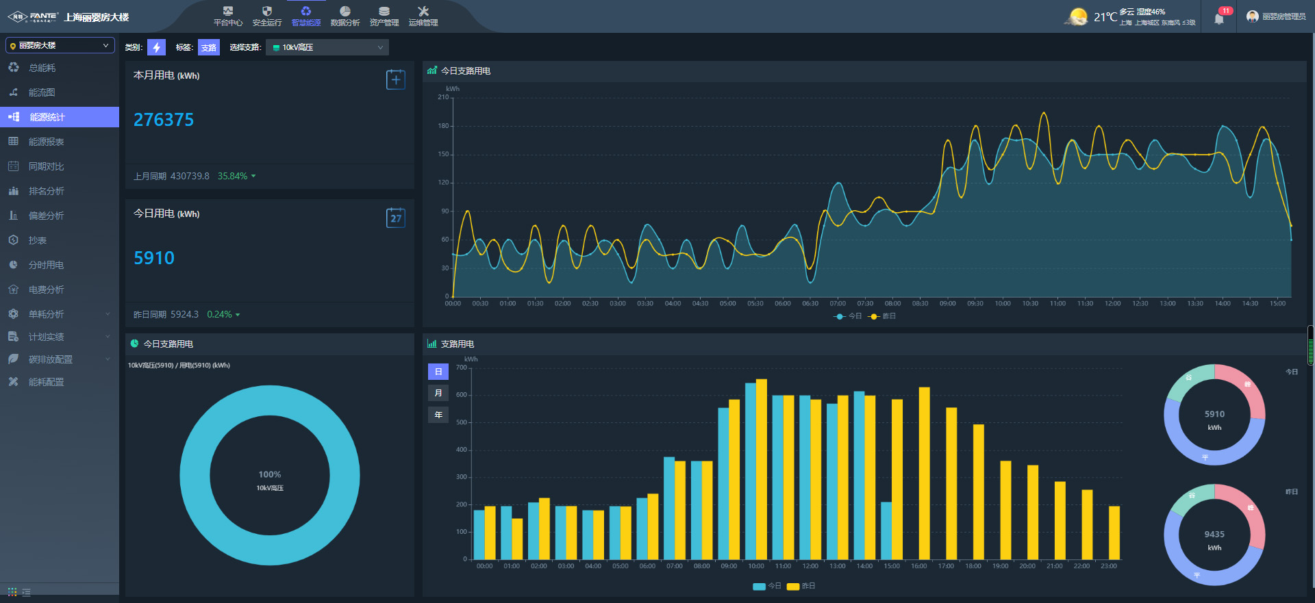 傳統(tǒng)企業(yè)的能耗管理沒有統(tǒng)一的監(jiān)管方式,數(shù)據(jù)統(tǒng)計不集中,各種能耗之間信息不互通,無法形成統(tǒng)一有效的管理;對能源流向的管理沒有實時數(shù)據(jù),無法及時發(fā)現(xiàn)一些能源浪費的問題存在,造成無需求區(qū)域能源的流失;傳統(tǒng)的能耗管理方式依靠人工巡檢、手動抄表,無法對用能規(guī)律進行自動化統(tǒng)計分析,管理效率低;沒有預(yù)警、預(yù)防、預(yù)測機制,冒滴漏現(xiàn)象普遍存在而沒有及時發(fā)現(xiàn),存在安全隱患。凡特根據(jù)正泰啟迪智電港的情況,為其打造一套專業(yè)的智慧能源管理系統(tǒng)。