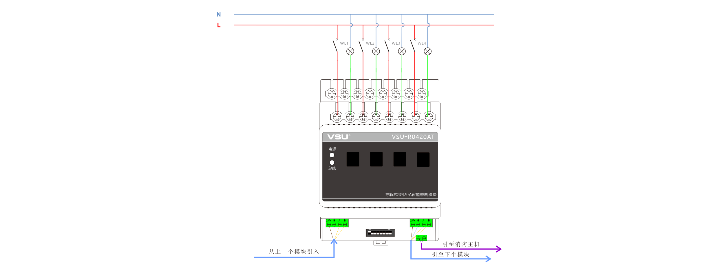 本產(chǎn)品為導(dǎo)軌式安裝,含4路智能繼電器,每回路可獨(dú)立控制4400W燈具的開(kāi)關(guān),帶強(qiáng)切功能和互鎖功能。
