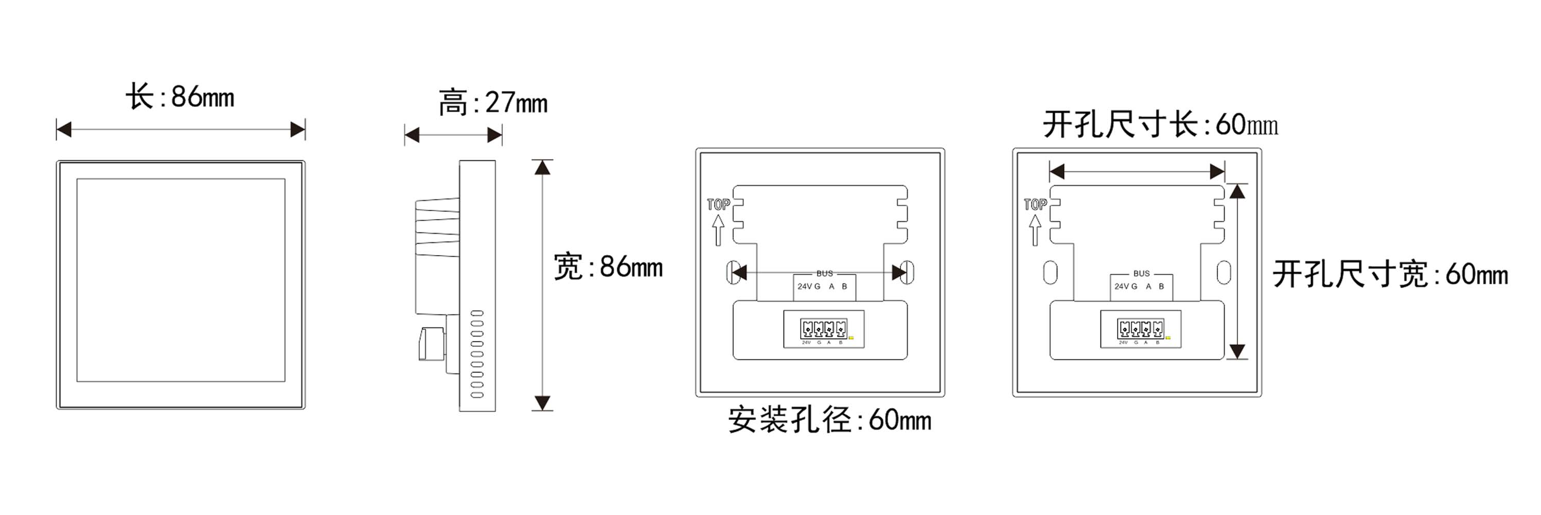 標(biāo)準(zhǔn)86盒安裝,4寸真彩屏,單控開(kāi)關(guān)、窗簾和場(chǎng)景總線控制,可自定義界面支持3D文字、3D圖片,個(gè)性化界面;用于集中控制,支持雙向通信,安裝方便,接口靈活,適用于各種多媒體中央控制系統(tǒng)。