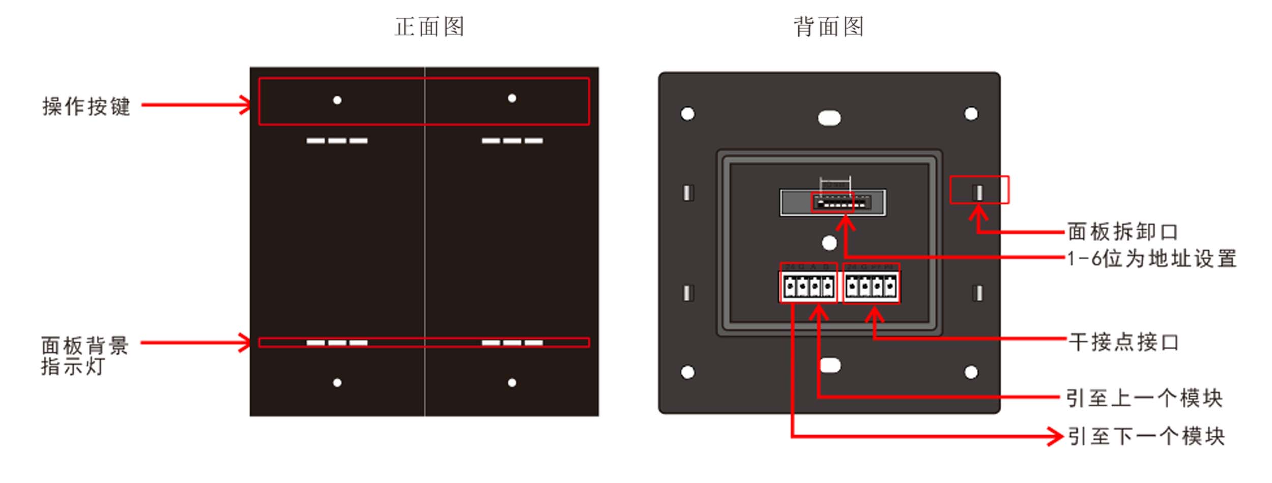 標準86底盒安裝,支持無縫聯(lián)接,提供4鍵,每個按鍵帶1路LED指示燈,復位式輕觸開關,結構成熟,性能穩(wěn)定,標準工藝,采用塑料材質(zhì)(顏色可選灰色、黑色和香檳金);自帶感應式背光燈;提供兩路IO輸入可外接傳感器。