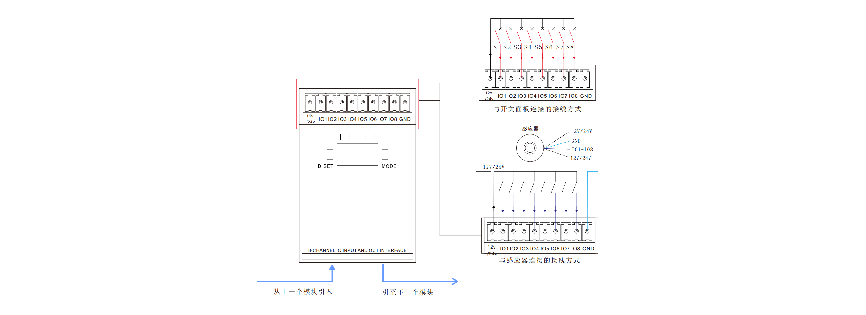 1.提供8路IO輸入接口,可接機(jī)械按鍵和門磁、人感等IO輸入信號(hào),識(shí)別按鍵短按按下,短按松開或長(zhǎng)按,長(zhǎng)按松開嵌入總線;
